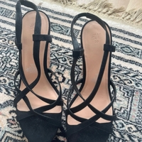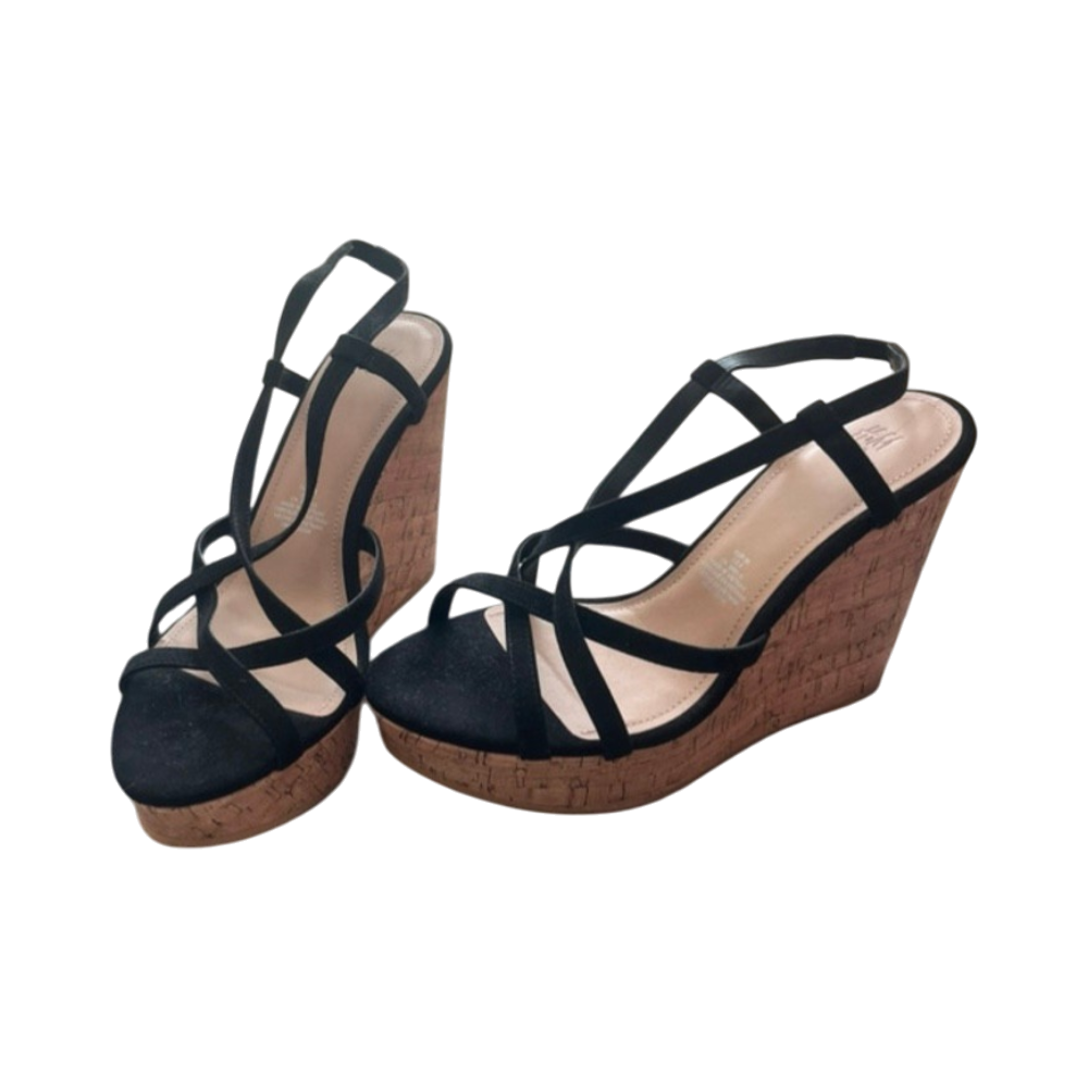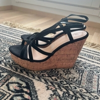 Mustat sandaalit korkeat korkokengät, korkkipohja, hyväkuntoiset. Koko 39, HM