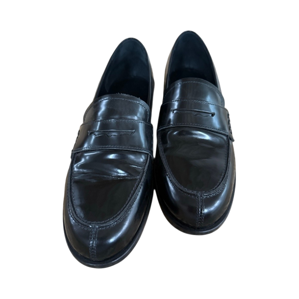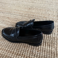 Kiiltävät mustat nahkaloaferit, klassinen design, köytetty muutaman kerran. Koko 38,5.