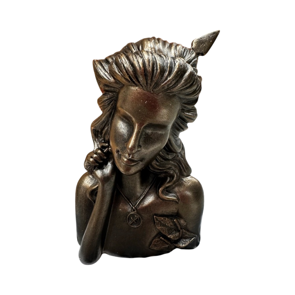 Fyrklövern merkkinen. Polyresinistä valmistettu. Pronssinen pinta.