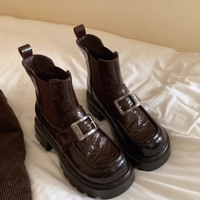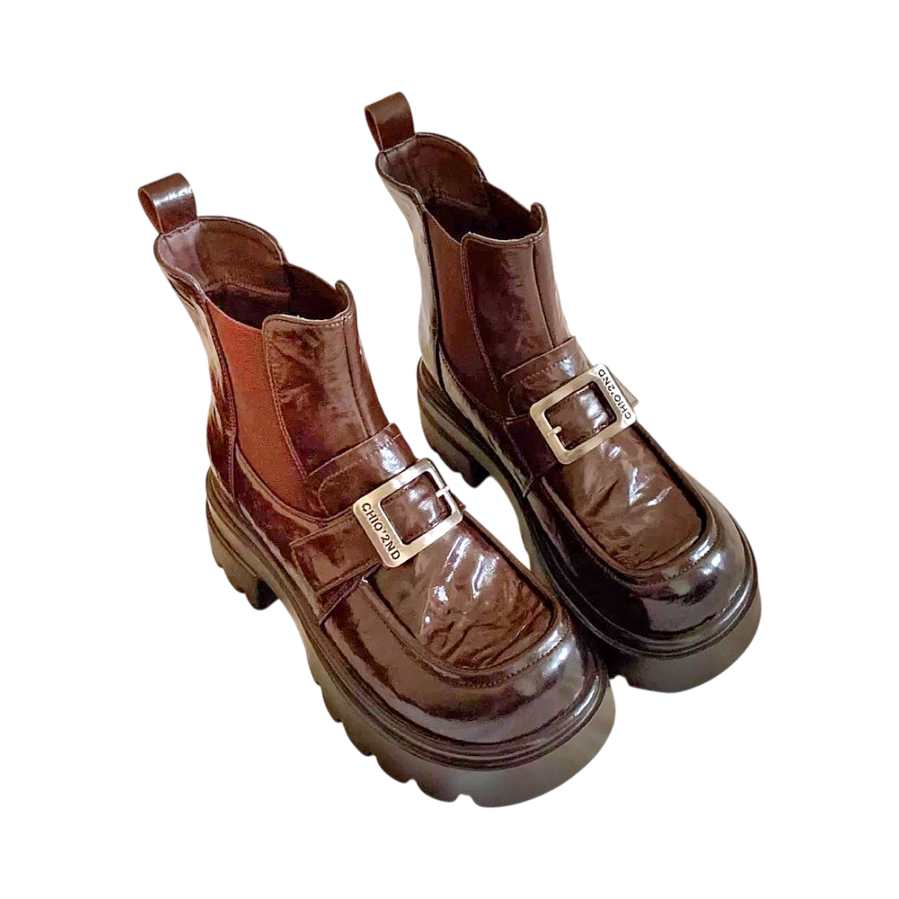 Beautiful Chio2nd short boots in a warm brown shade. Genuine leather with natural wrinkle texture for a chic and premium look. Thick anti-slip sole and soft warm fur lining, perfect for cold seasons.