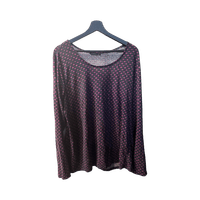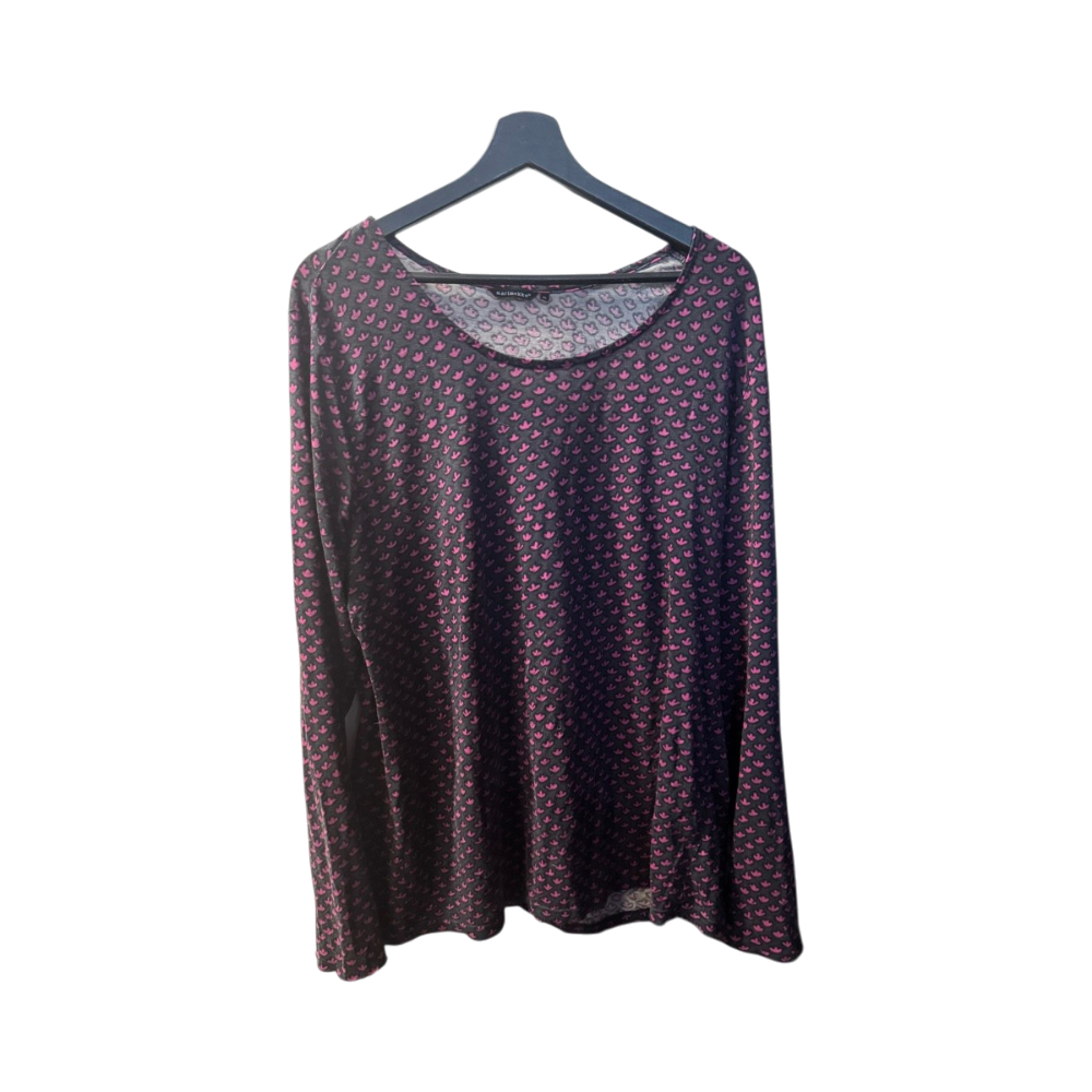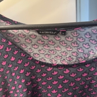 Pinkeillä marimekko kuvioilla kuvioitu harmaa pitkähihainen pusero, koko XL.