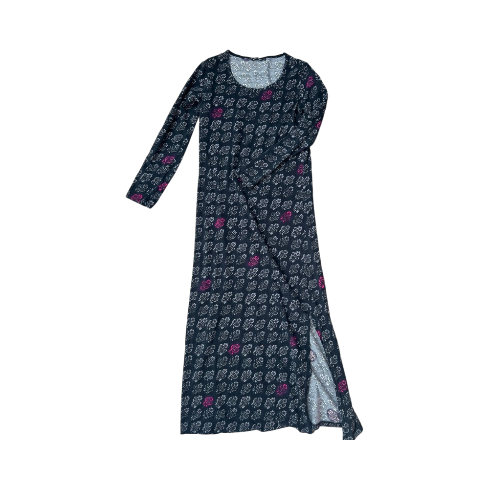 Marimekon puuvillainen maximekko, sivulla halkio. Koko s, pituus 130cm ja kai kai mitta 44cm. Hyvässä kunnossa