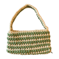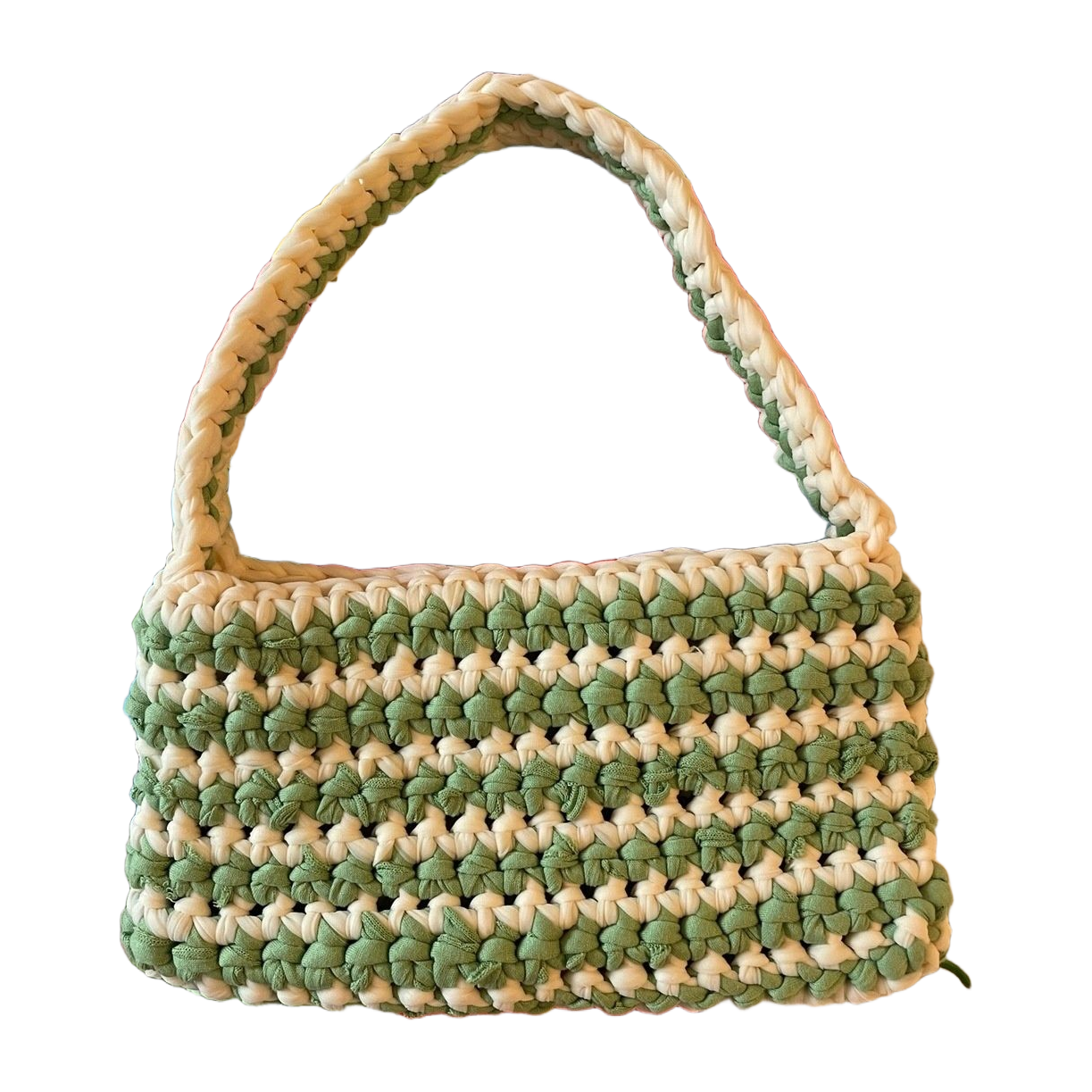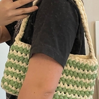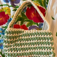 Itse virkattu vihreä-valkoinen pikkulaukku 💚🤍💚
