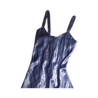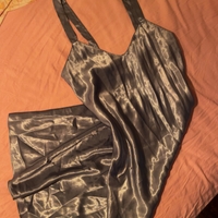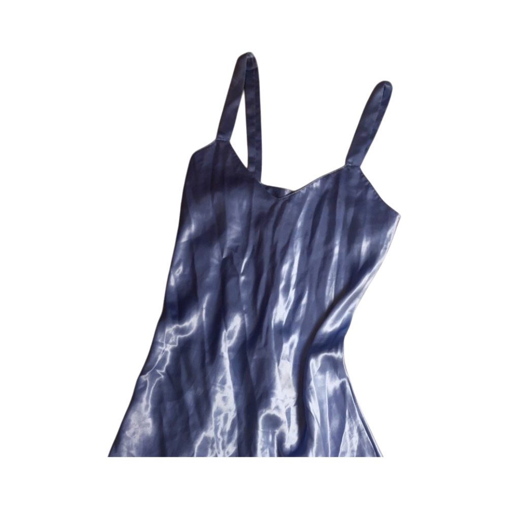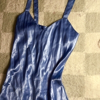 Hellästi kiiltävä sininen sifonkityylinen slip-mekko.