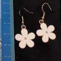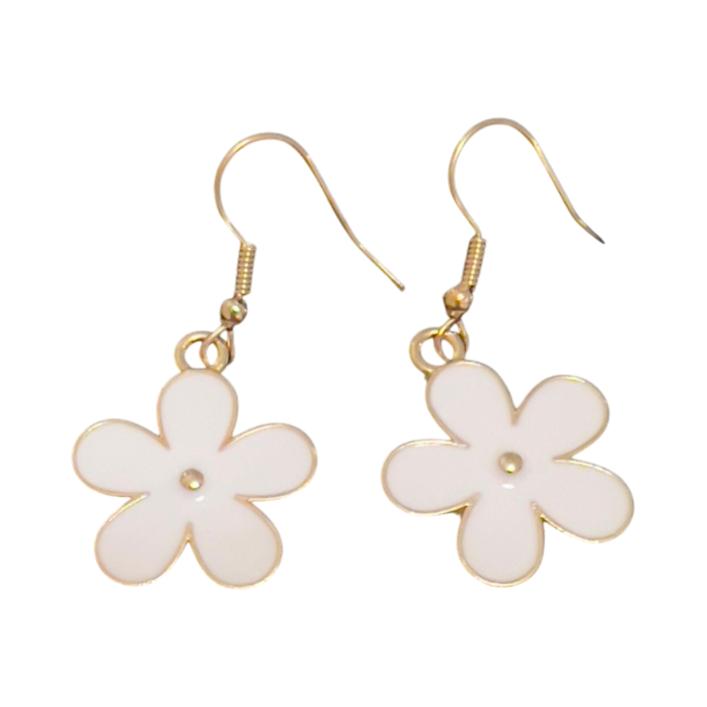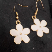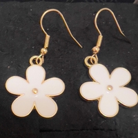 Pienet valkoiset kukkakorvikset, kultareunaiset koukut.
