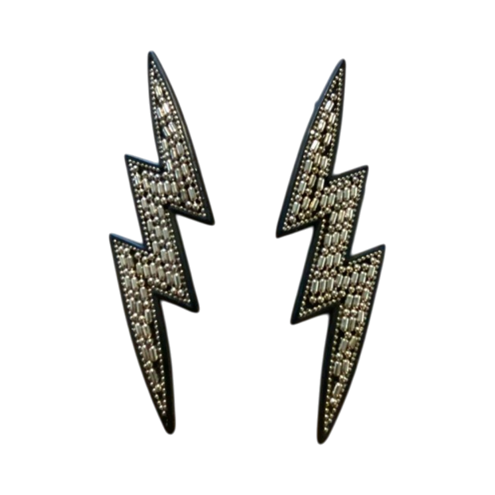 Kevyet, mustat salama-aiheiset korvakorut. Korkeus 10cm.