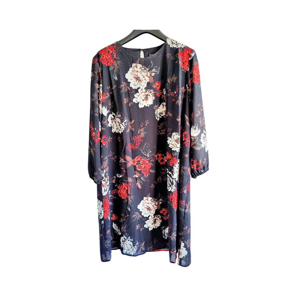 Kaunis, kukkakuviollinen mekko, kokoa 44. Vuorillinen, helppohoitoinen juhlamekko.