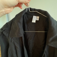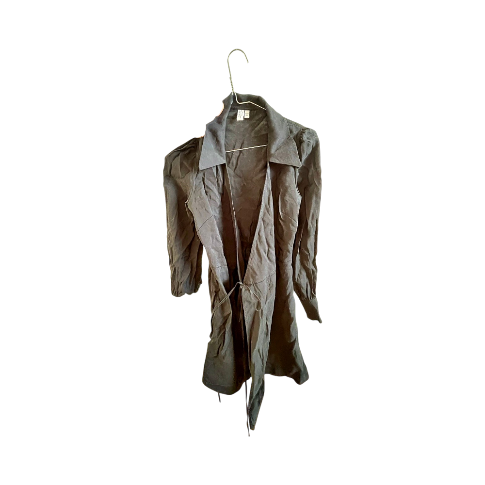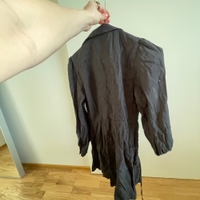 Pitkät hihat, kaulus ja vyötäröllä solmittava nauha. Sopii arkeen, toimistolle tai illanviettoon.