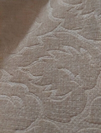Beige kuvioitu huivi, hapsureunat, pehmeä materiaali