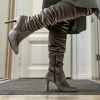 Ylimittaiset samettikorolliset saappaat, tyylikäs ja siisti kunto.
