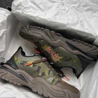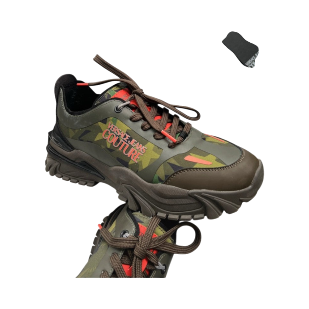 Versace Couture Chunky camouflage sneakers with raised lug sole and logo detailing.