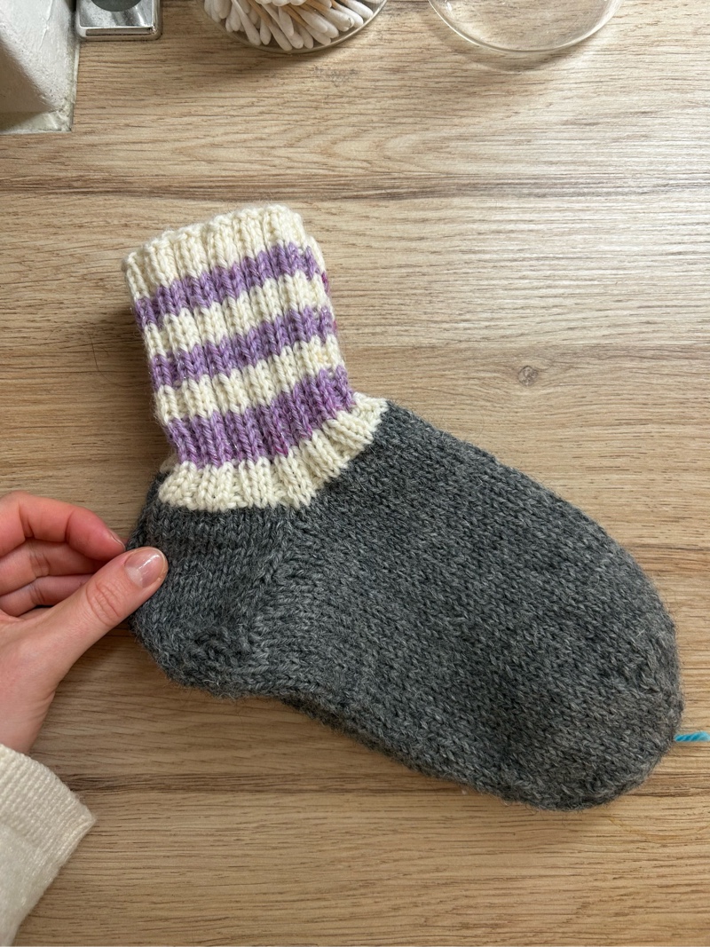 - As you can see the colours on the purple is a bit different on the socks, don’t know the idea behind it.
