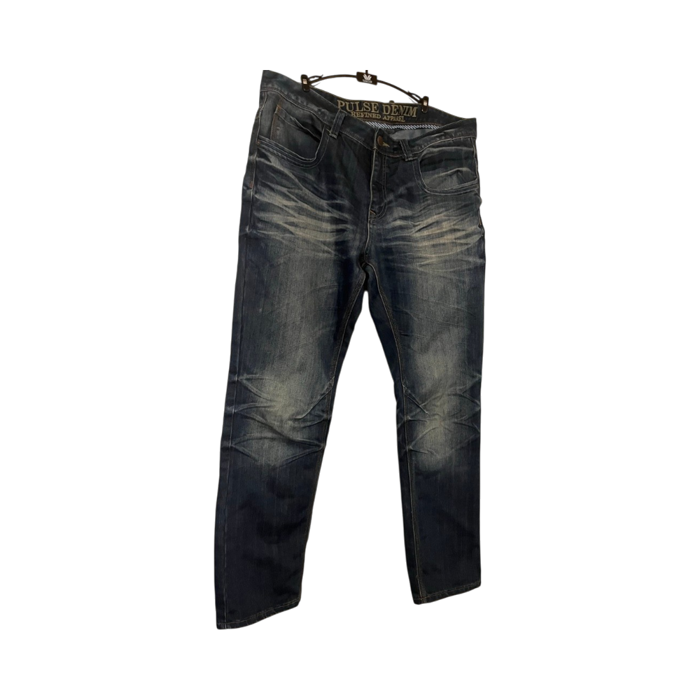 Miesten siniset farkut. Tuumakoko 35/32. Vyötärön leveys n 49cm, haara-lahje n 80cm. Eläintalous MMM, lisätietoja saa kysymällä