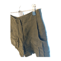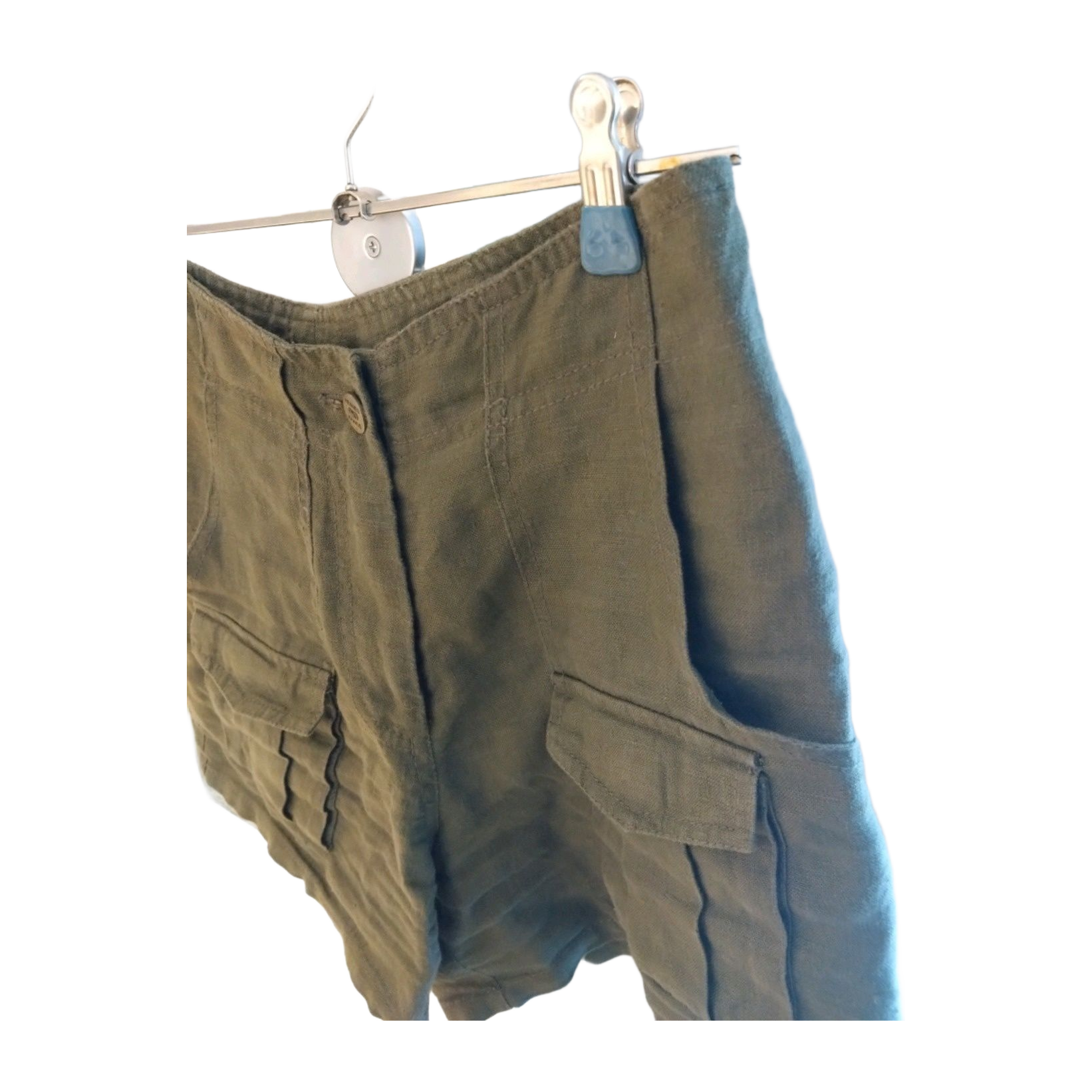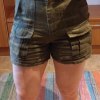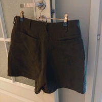 Hennesin oliivinvihreät khakishortsit. Pellavasekoitetta. Vyötäröllä vyönlenkit. Edessä sivutaskut ja läpälliset etutaskut, joiden läpässä tarrakiinnitys, ja takana taskut. Pituus vyötäröltä lahkeeseen n. 38 cm. #khaki #shorts #summervibes #linen #pellava
