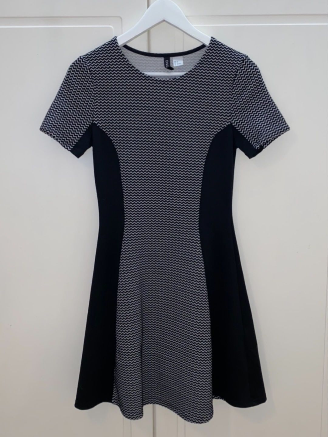 Lyhyt musta-valkoinen mekko napakkaa trikoota. Käytetty pari kertaa.