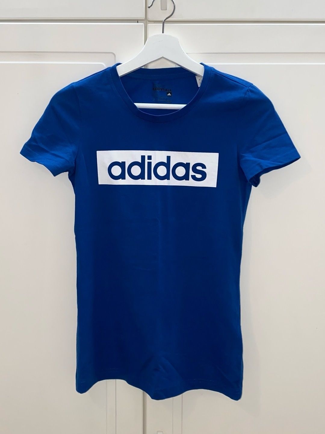 Lähes uudenveroinen Adidaksen sininen t-paita.