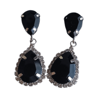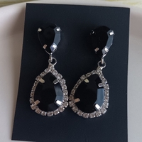 Mustat lasikivet, hopeanvärinen reunus,taustat sisältyvät. Käyttämättömät. Korumetalliseosta.