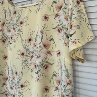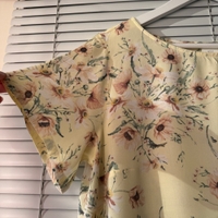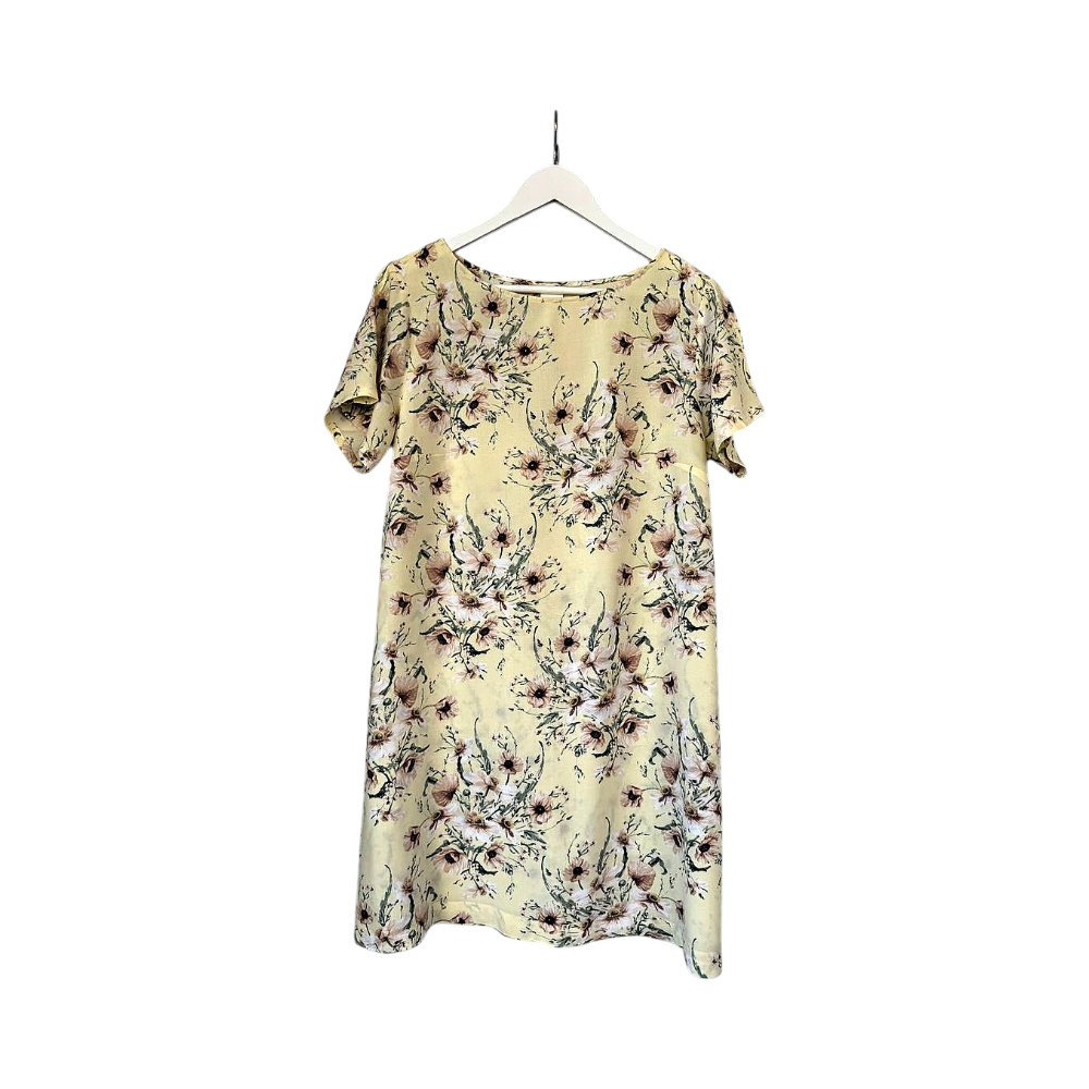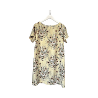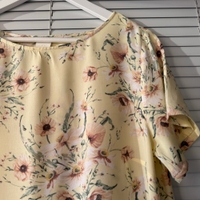 Erinomaisessa kunnossa oleva H&M vaaleankeltainen kukkakuvioinen mekko/tunika. Rento ja mukava malli päällä. Koko 44, mutta vastaa mielestäni paremmin kokoa 42 (ks. myös mitat alta). Ollut käytössä S-M kokoisella. Materiaali 100% viskoosia. Savuton koti, ei lemmikkejä.