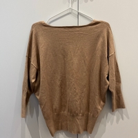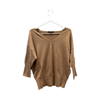 Comman ruskea 3/4-hihainen neulepusero, koko 38. Etupuolella nukkaantunut kohta.