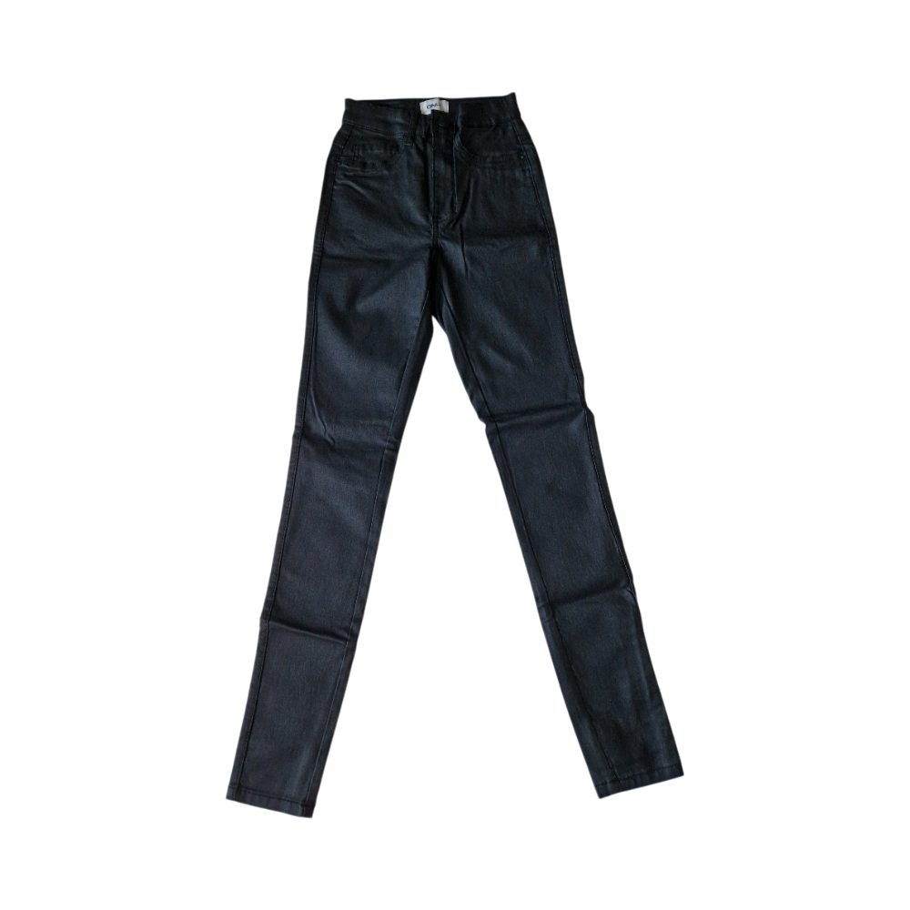 Käyttämättömät Onlyn "Onlroyal HW SK Rock Coated Pim Noos" -nimiset mustat housut koossa XS/30.
