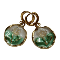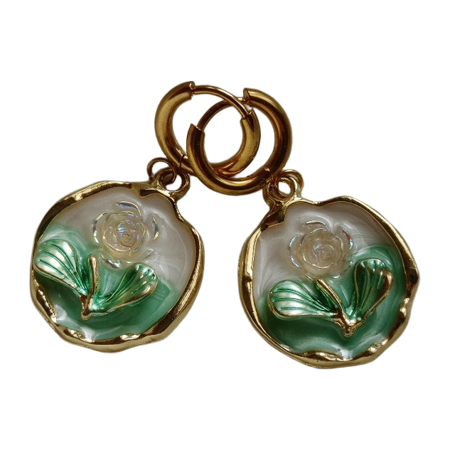 Kauniit kultaiset korvakorut, kukkakuviolla. Renkaat ruostumatonta terästä.
