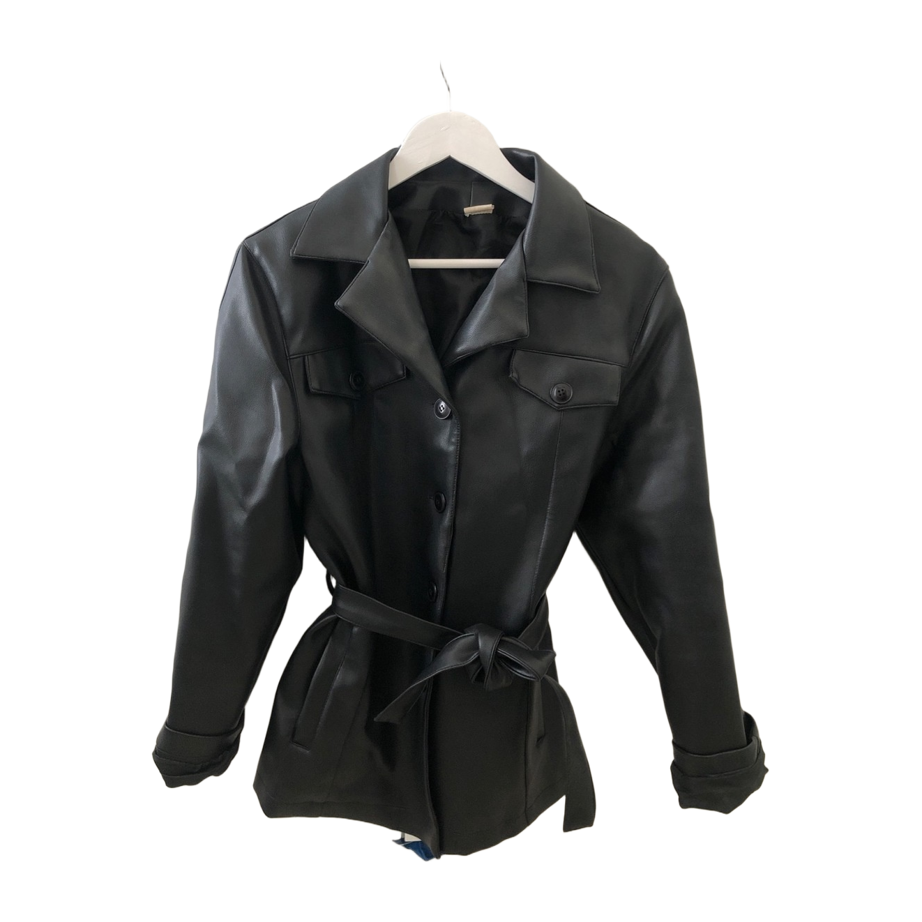 Vintage tekonahkatakki. Jäänyt vähäiselle käytölle. Olkatoppaukset poistettu. M-koko.