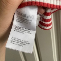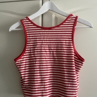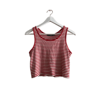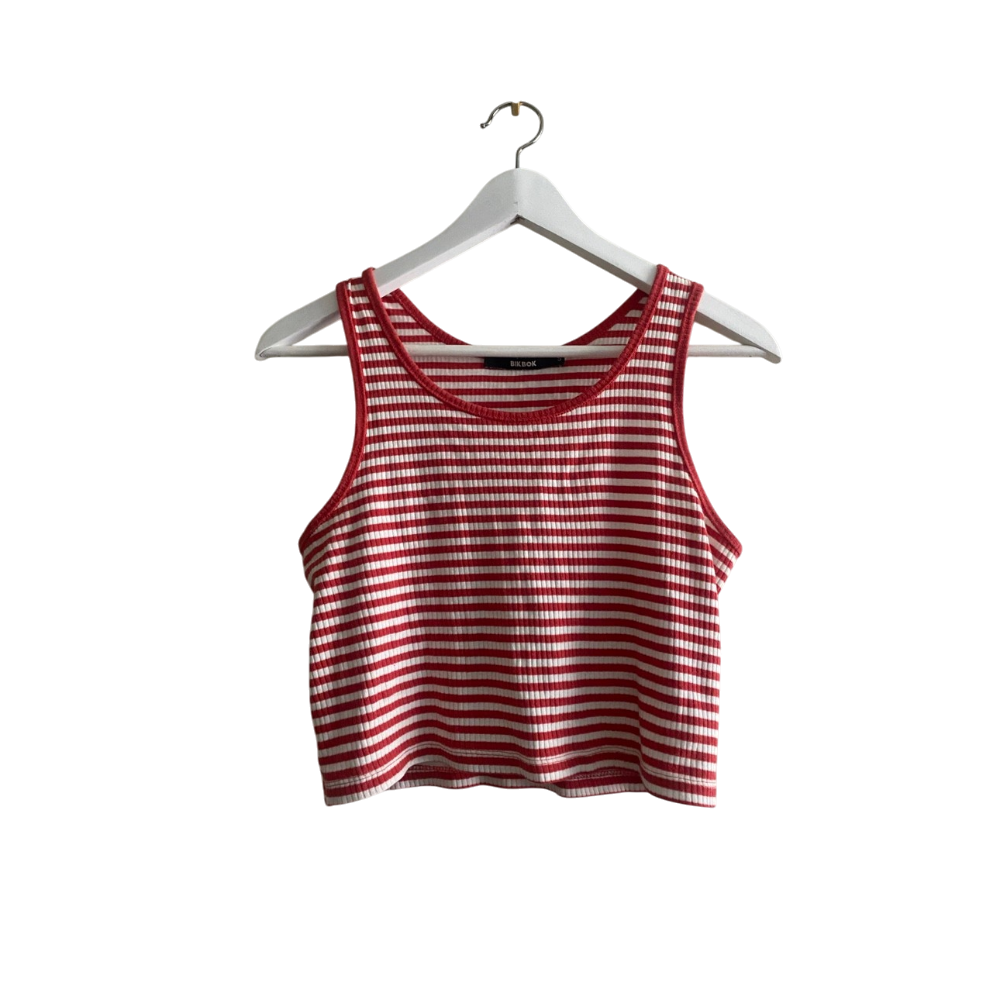 Punavalkoinen ribbattu tanktop, joustava ja lyhyt malli. 95% puuvillaa.