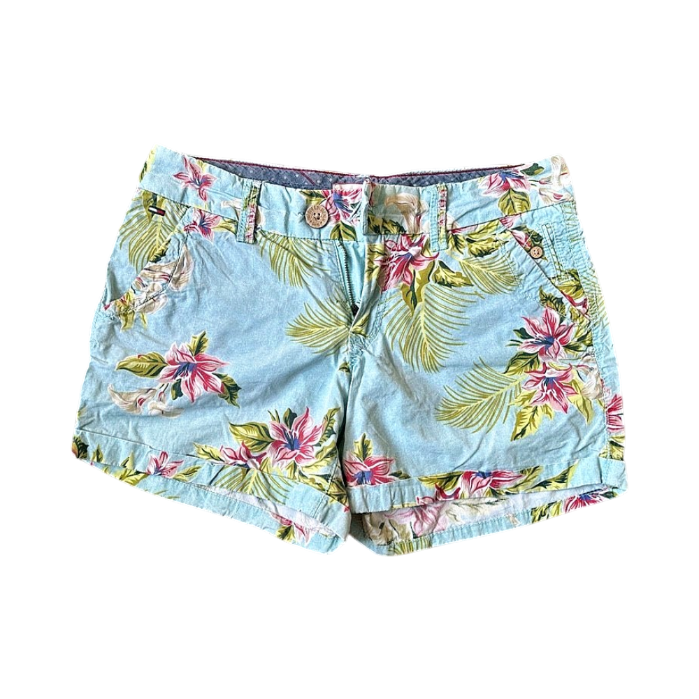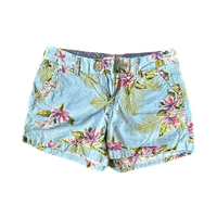 Light blue shorts with floral pattern, casual summer wear, size 25