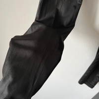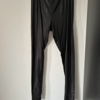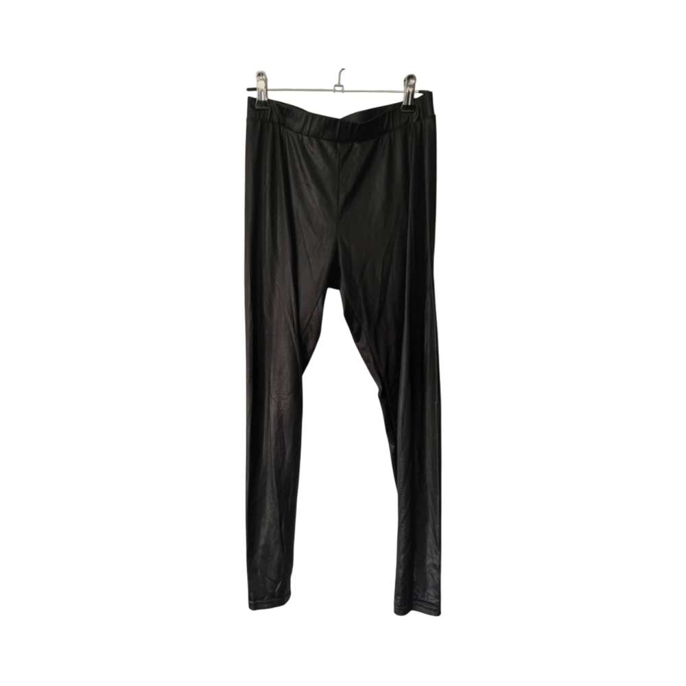 Slim-fit shiny faux-leather look leggings, elastic waist.