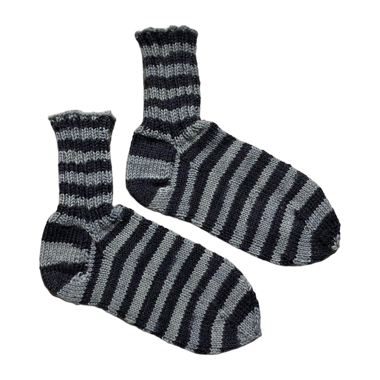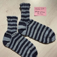 Uudet novitan 7-veljestä langasta neulotut villasukat. Siniraitaiset. Kokoa 37. Kantapää-varpaat mitta 23,5cm.