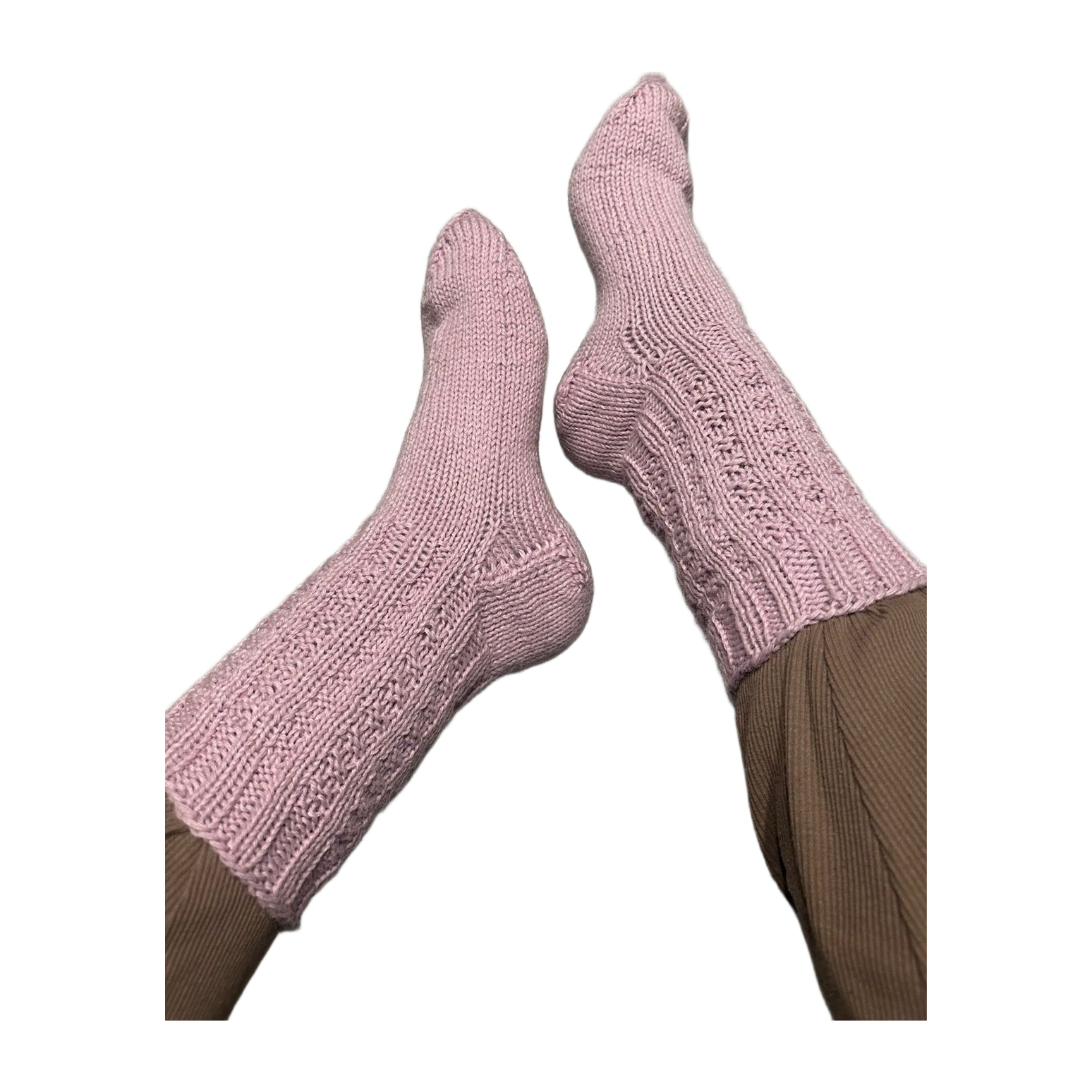 Vaaleanpunaiset uudet villasukat. Pohjan pituus 23cm, vastaavat noin kokoa 37.