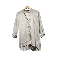 Pliseerattu selkä, napit edessä, rennosti laskeutuva malli.