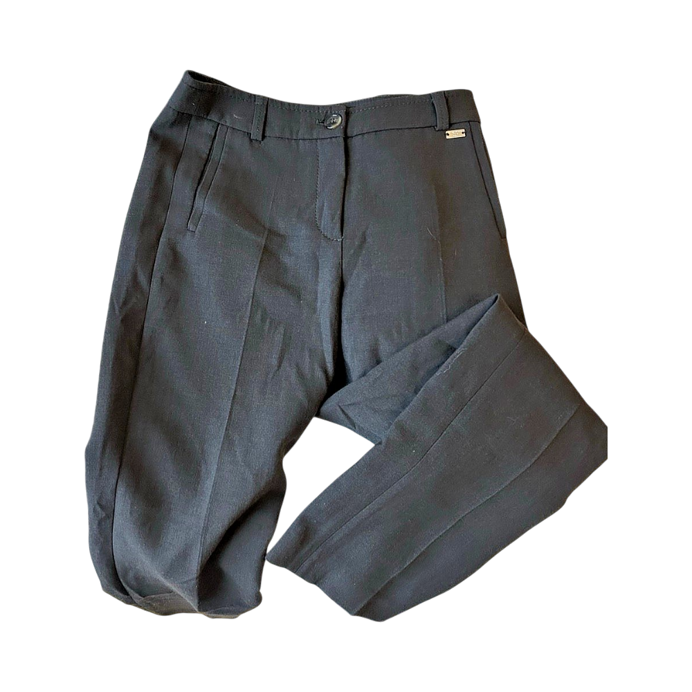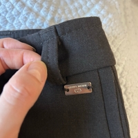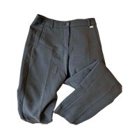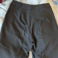 Siistit puvunhousut, hyvässä kunnossa vaikka rypistyneet vähän kaapin perällä. Kapenevat hieman lahkeita kohti. Sävy ruskeanharmaa