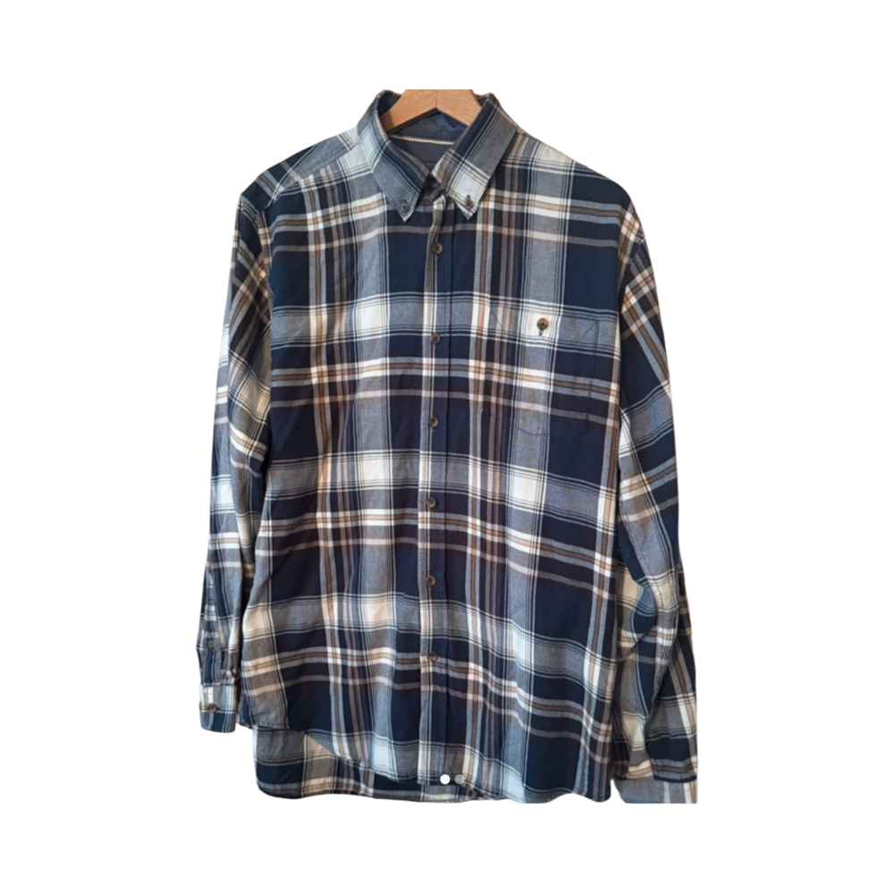 Pitkähihaista ruutupaitaa, nappikaulus, hyväkuntoinen.