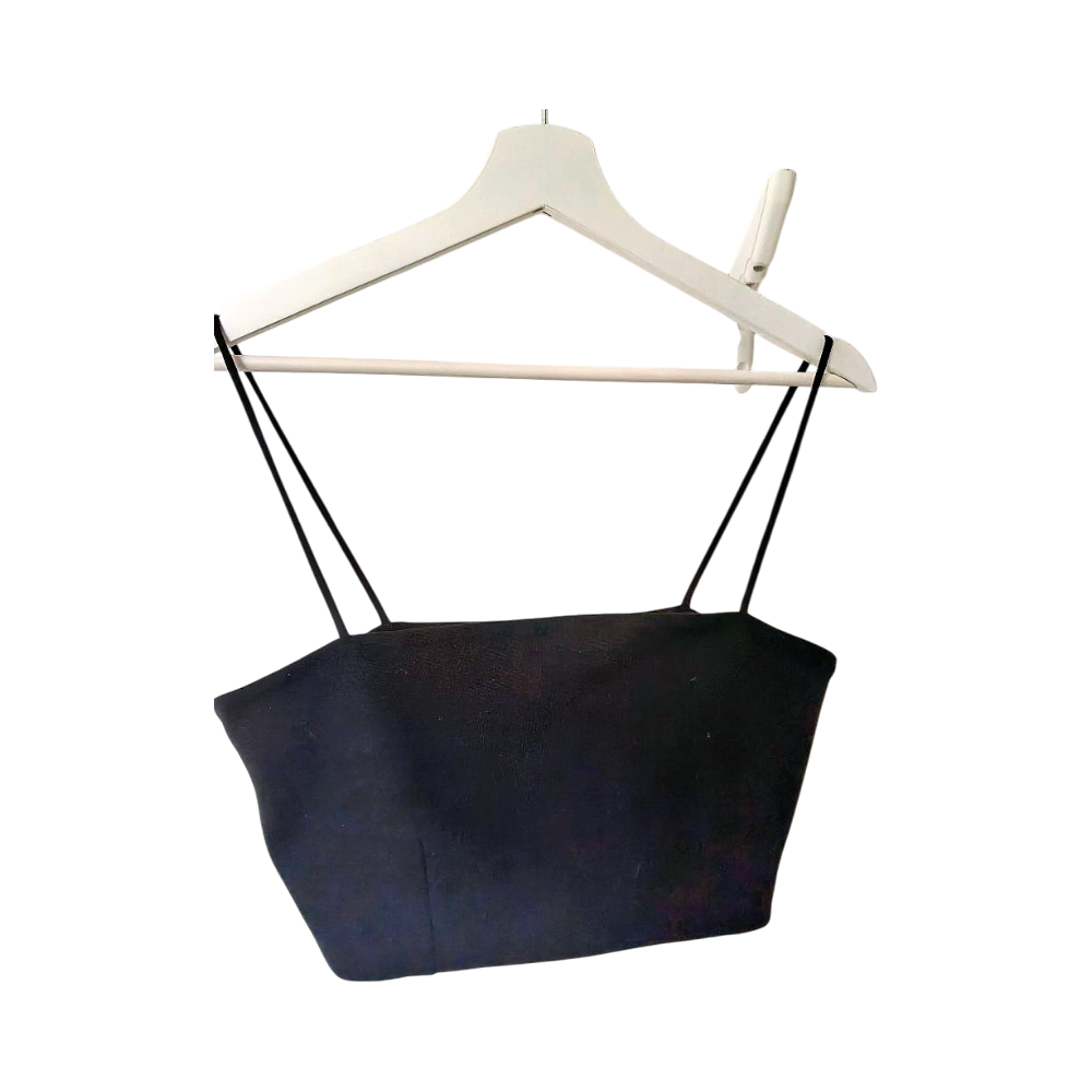 Musta hihaton toppi ohuilla olkaimilla, siisti malli.