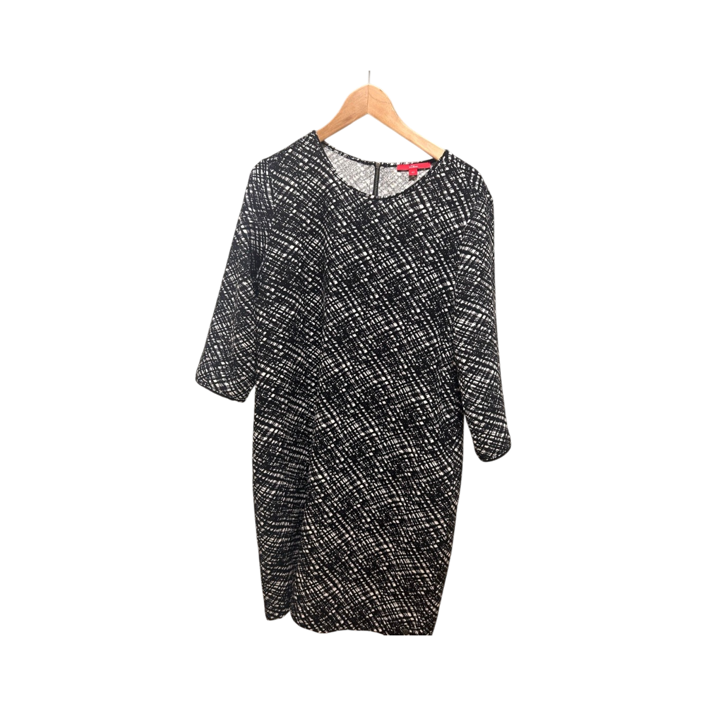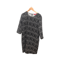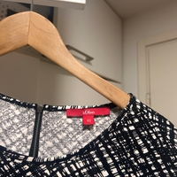 Polvipituinen mustavalkoinen kuvioitu mekko, takavetoketju.