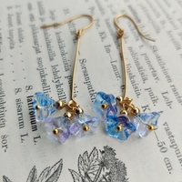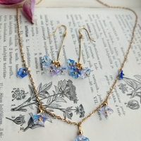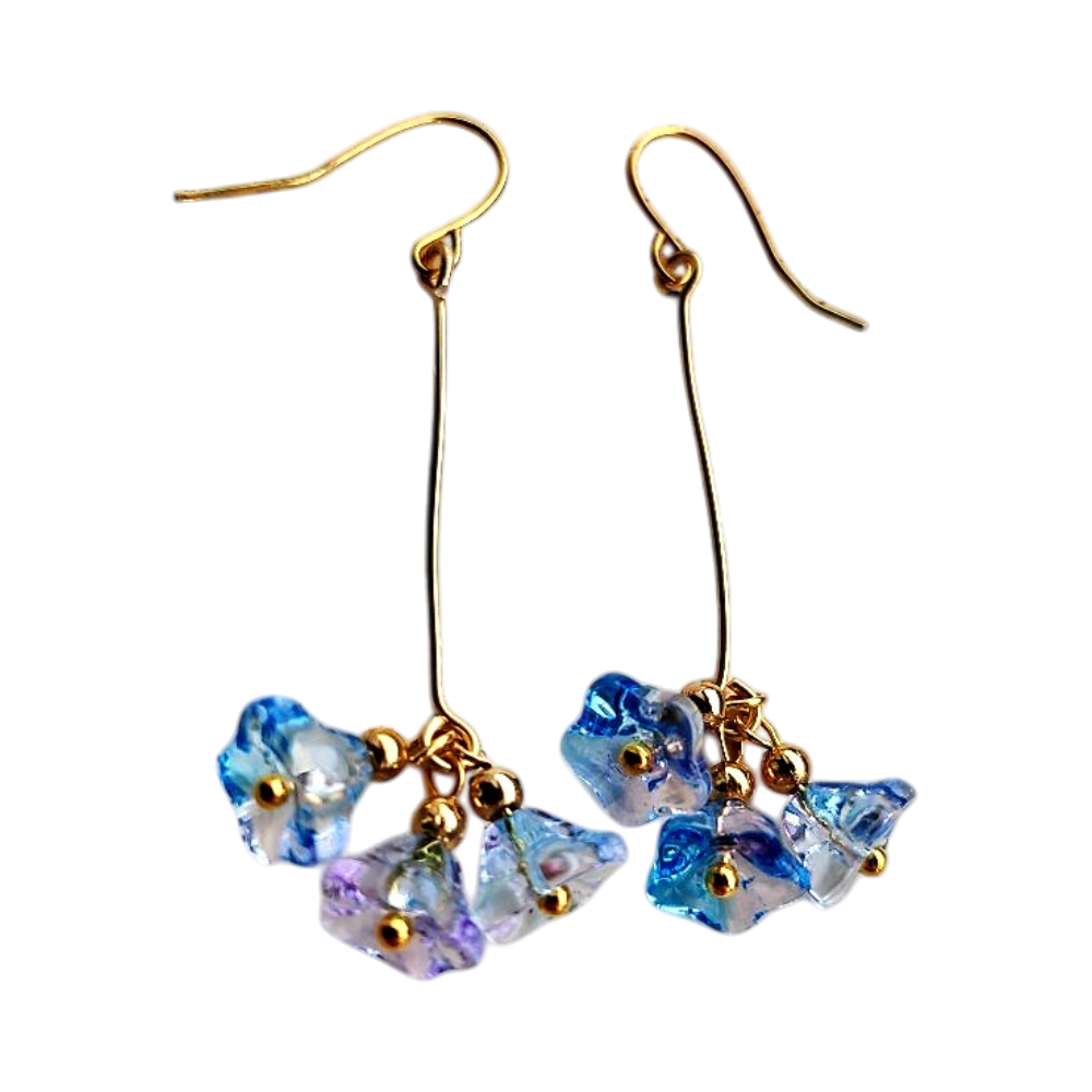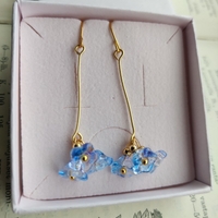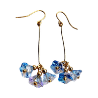 Käsintehdyt uniikit korvakorut. Söpöt sinisävyiset kukkakorvikset. Koukut kullattua nikkelitöntä korumetallia. Korujen pituus noin 5 cm. Kaulakoru myynnissä erikseen. #handmade #earrings #flowers #summer #cute