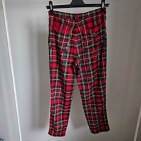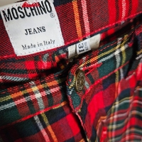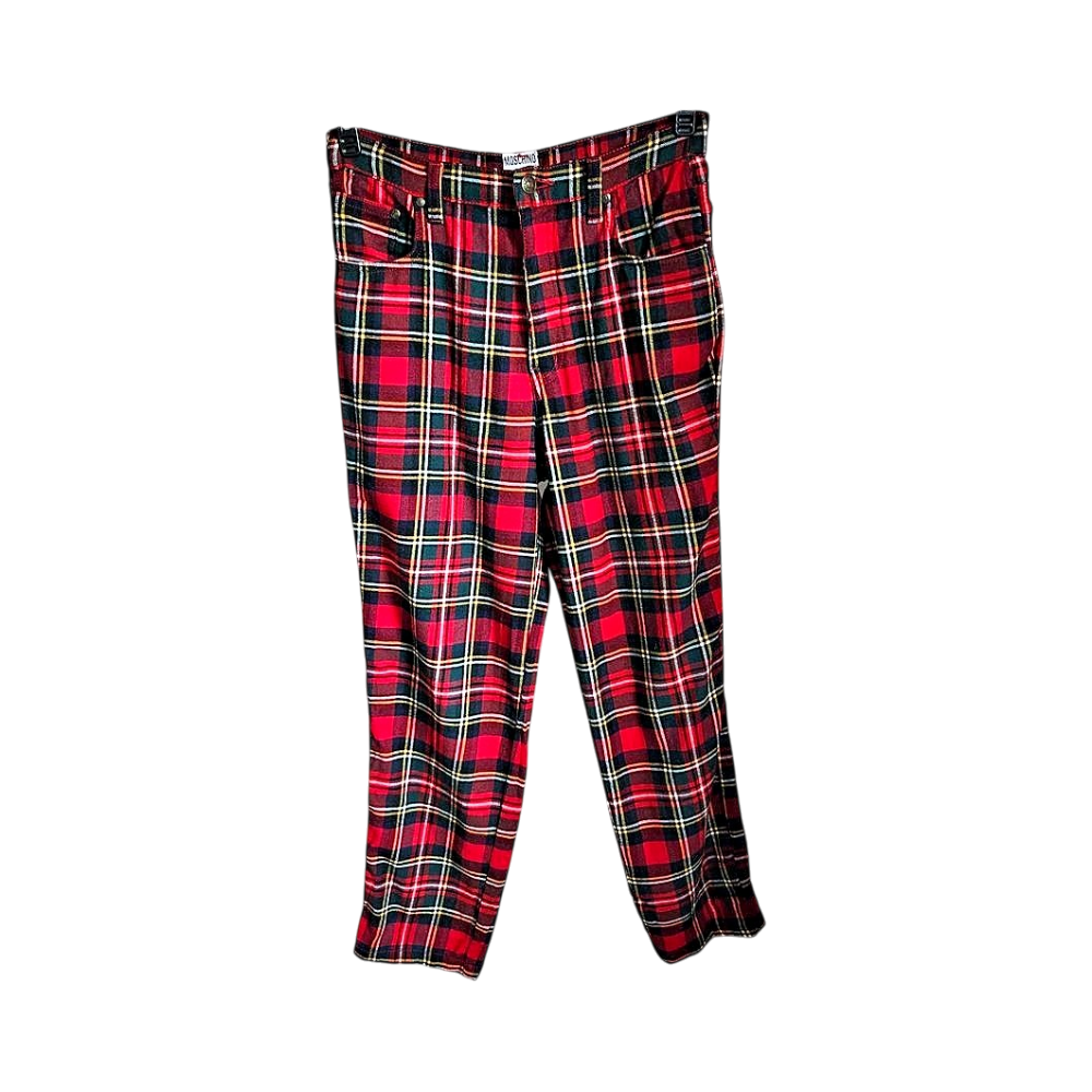 Stunning and rare Moschino Jeans tartan trousers in classic red Scottish plaid.