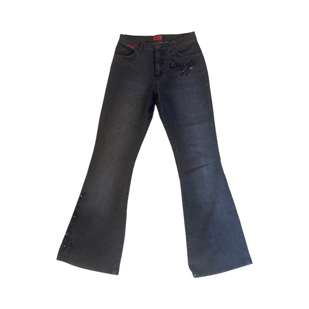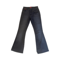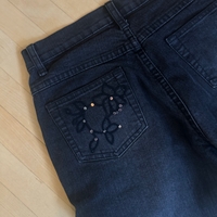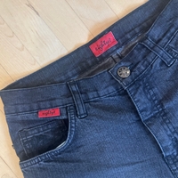 XS-S kokoa. Oon 160cm pitkä ja mulle just sopivan pituset. Lahkeessa, takataskussa ja edessä yksitysikohta.