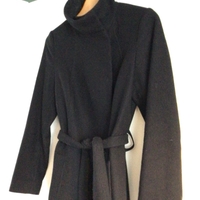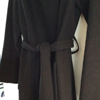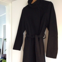 Part Two musta, pitkä villakangastakki kokoa 36. Väri täysin musta, kuvat ylivaloitettu jotta mallin näkee paremmin. Sivuilla taskut ja pitkä vyö. Pystykaulus ja nepparit koko matkalta. Niskan merkkilappu irronnut ja nepparit hieman löystyneet, muutoin siistissä käytetyssä kunnossa. Villaa 70% ja jokin thermo eriste, lämpöinen takki. Kainalo-kainalo n. 48cm, vyötärö vyön kohdalta n. 46cm ja pituus n. 103cm. Hieman nukkaa pinnassa.