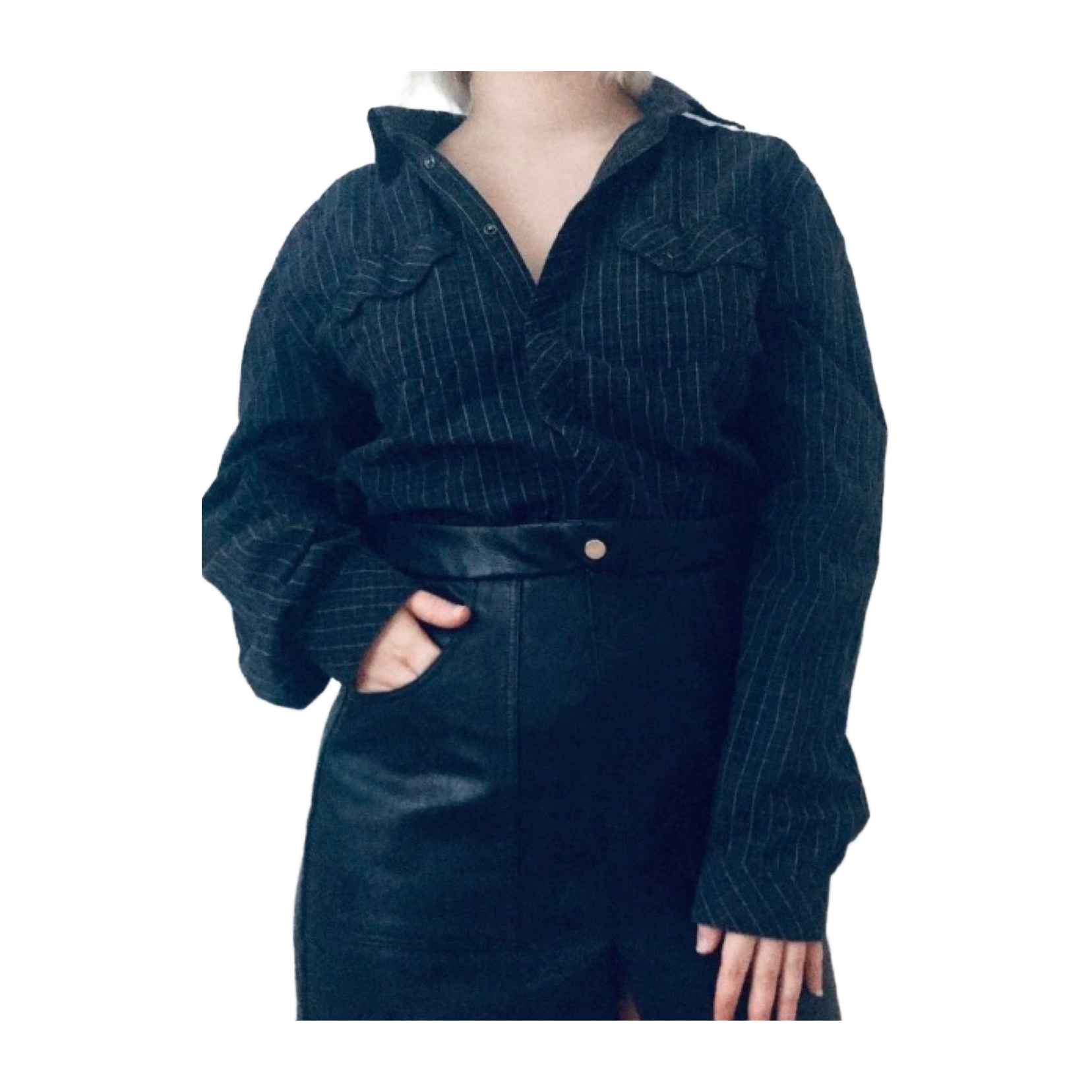 Miesten ”liituraita”-tyylinen kauluspaita (ruudullinen, mutta vaakaraidat paljon haaleammat). Väri musta/ tummanharmaa. Koko L. 100% puuvillaa. Ilmainen toimitus AK88654 #pinstripe #goth #gothic