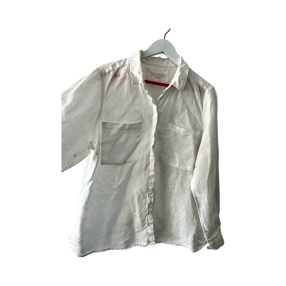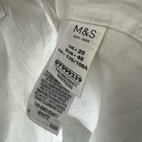 Valkoinen M&S pellavapaita, oikein siistissä kunnossa. Kokomerkintä 48, vastaa mielestäni enemmän kokoa xl. Pituus 70cm ja kai kai mitta 62cm. 100% pellavaa