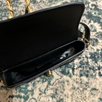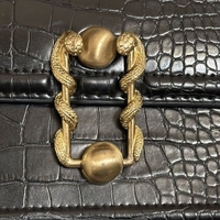 Tekonahkainen pikkulaukku, pidempi olkahihna ja lyhyt hihna, metalliosassa pientä kulumaa