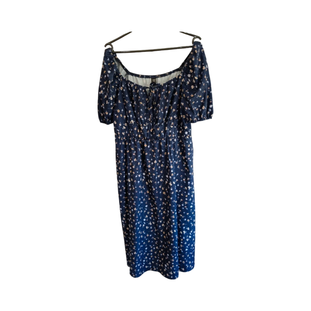 kukkamekko off-shoulder-hihalla ja vyötärön kuminauhalla.