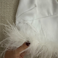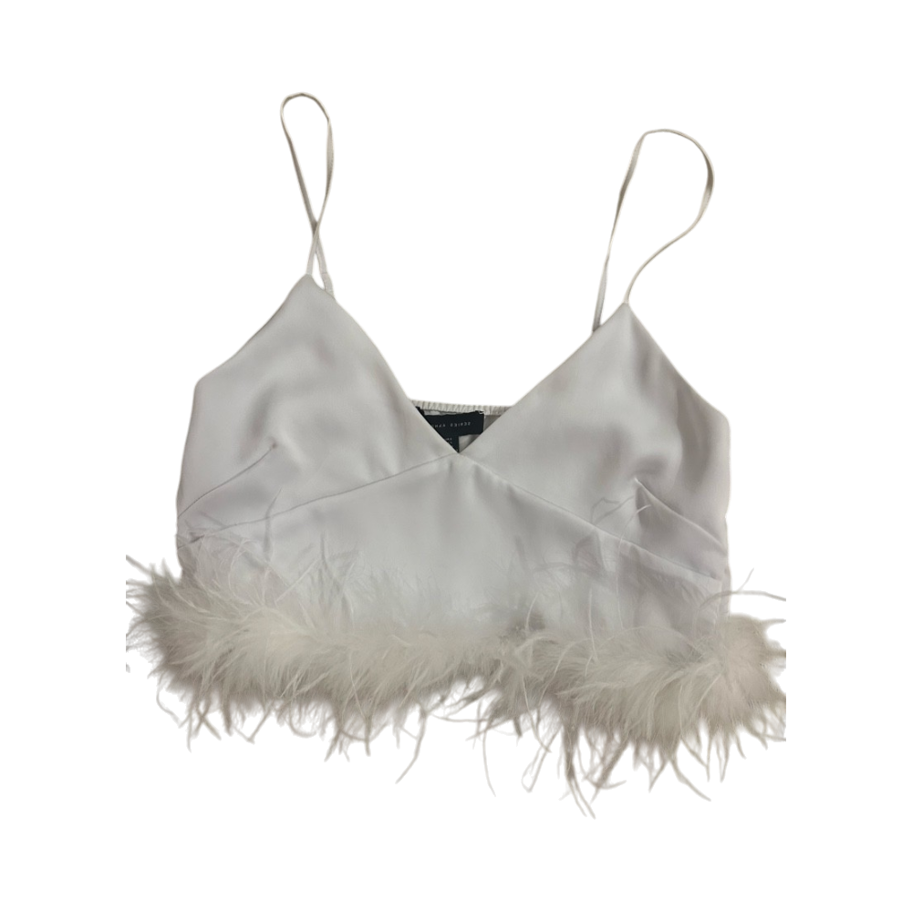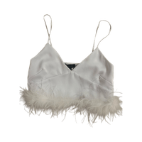 Hihaton cropped top höyhenkoristein, juhlava viimeistely. Käytetty kerran, upea talven juhliin ✨🩷 koko S