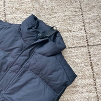 Muhkea ja lämmin untuvaliivi, koko s, ovesize mallinen. Miesten malli, toimii hyvin unisex mallina. Pituus 68cm ja kai kai mitta noin 59cm. Tummansininen