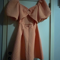 Puff-hihat, leikattu vyötärö, tikattu kuviointi, lyhyt helma.