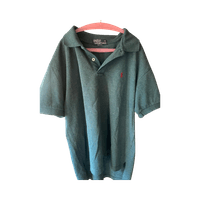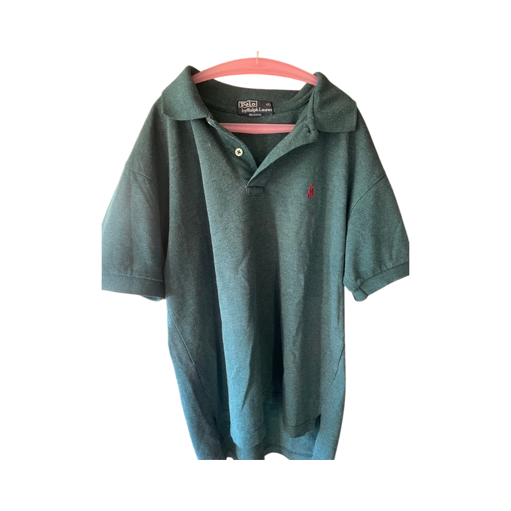 Vihreä miesten Polo-paita, pieni punainen logo rinnassa.