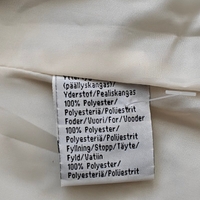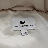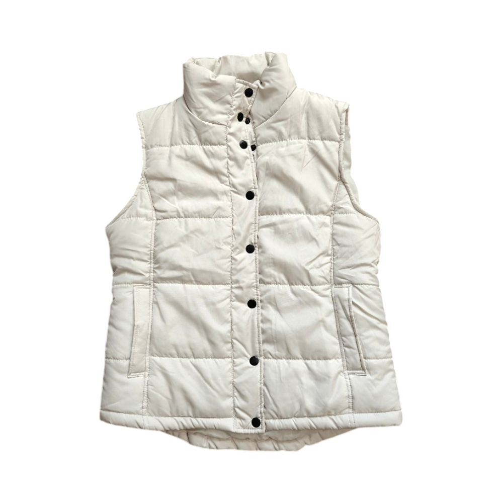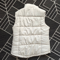 White sleeveless padded vest, front pockets.