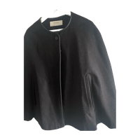 Cape has interior polyester lining, 2 black buttons up infront for closure and two openings for arms on both sides. ( pls. notice they are not pockets!)